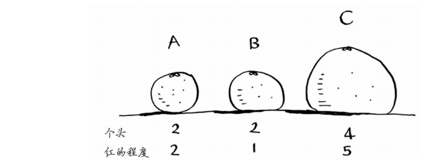 现在假设有三个水果,你可抽取它们的特征。