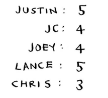 假设你要预测Priyanka会给电影Pitch Perfect打多少分。 Justin、 JC、 Joey、 Lance和Chris都给它打了多少分呢?