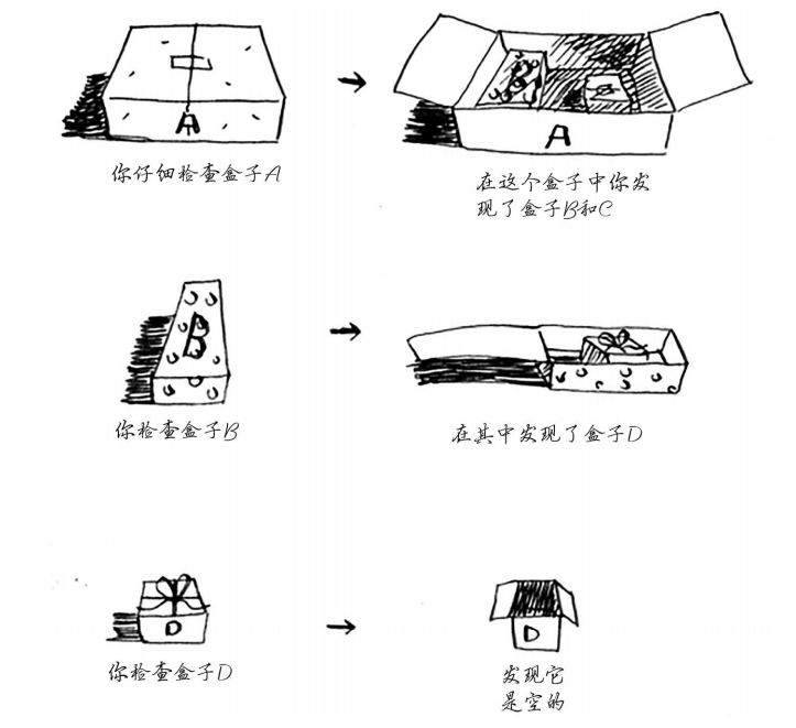 使用这种方法时,你创建一个待查找的盒子堆,因此你始终知道还有哪些盒子需要查找。